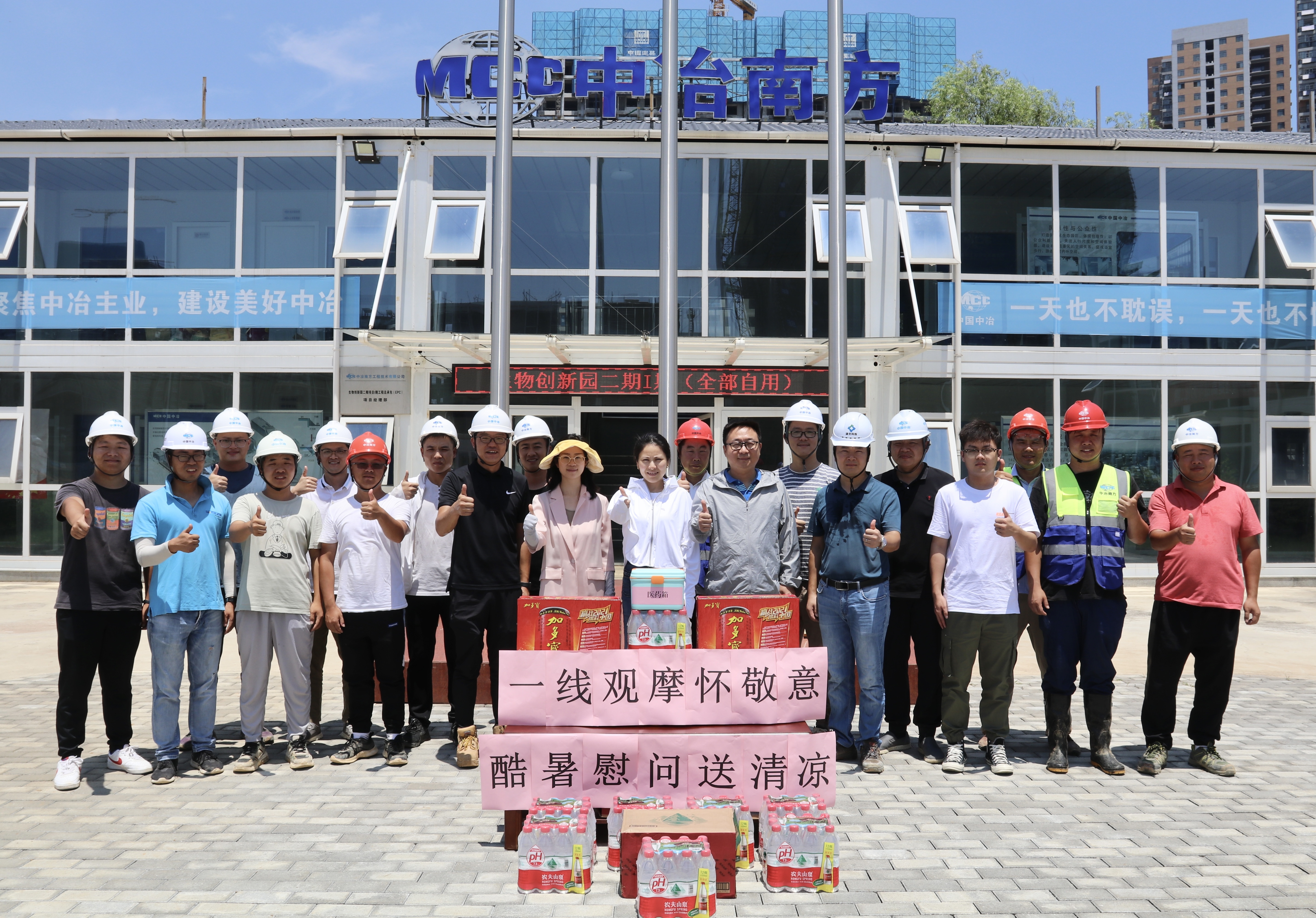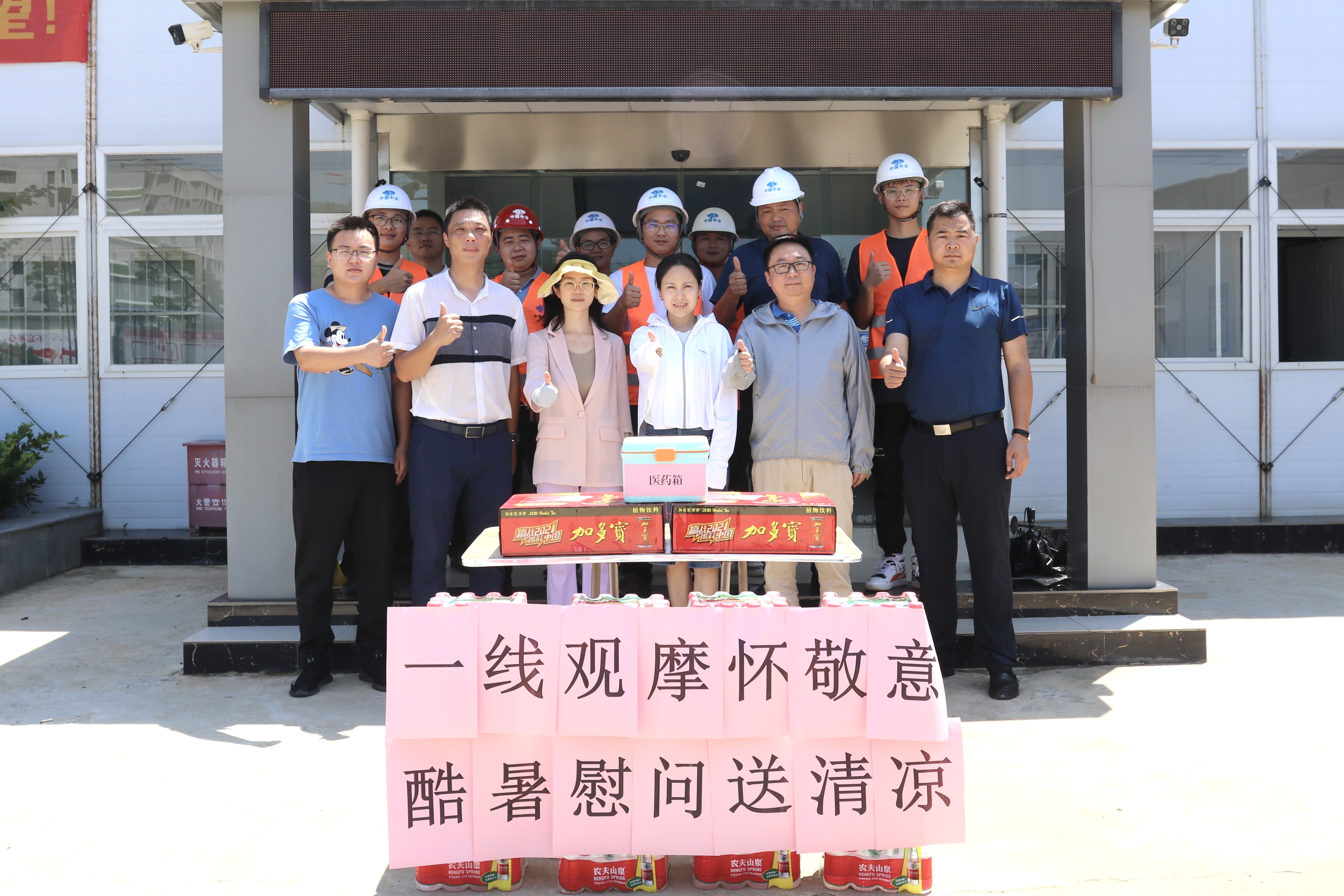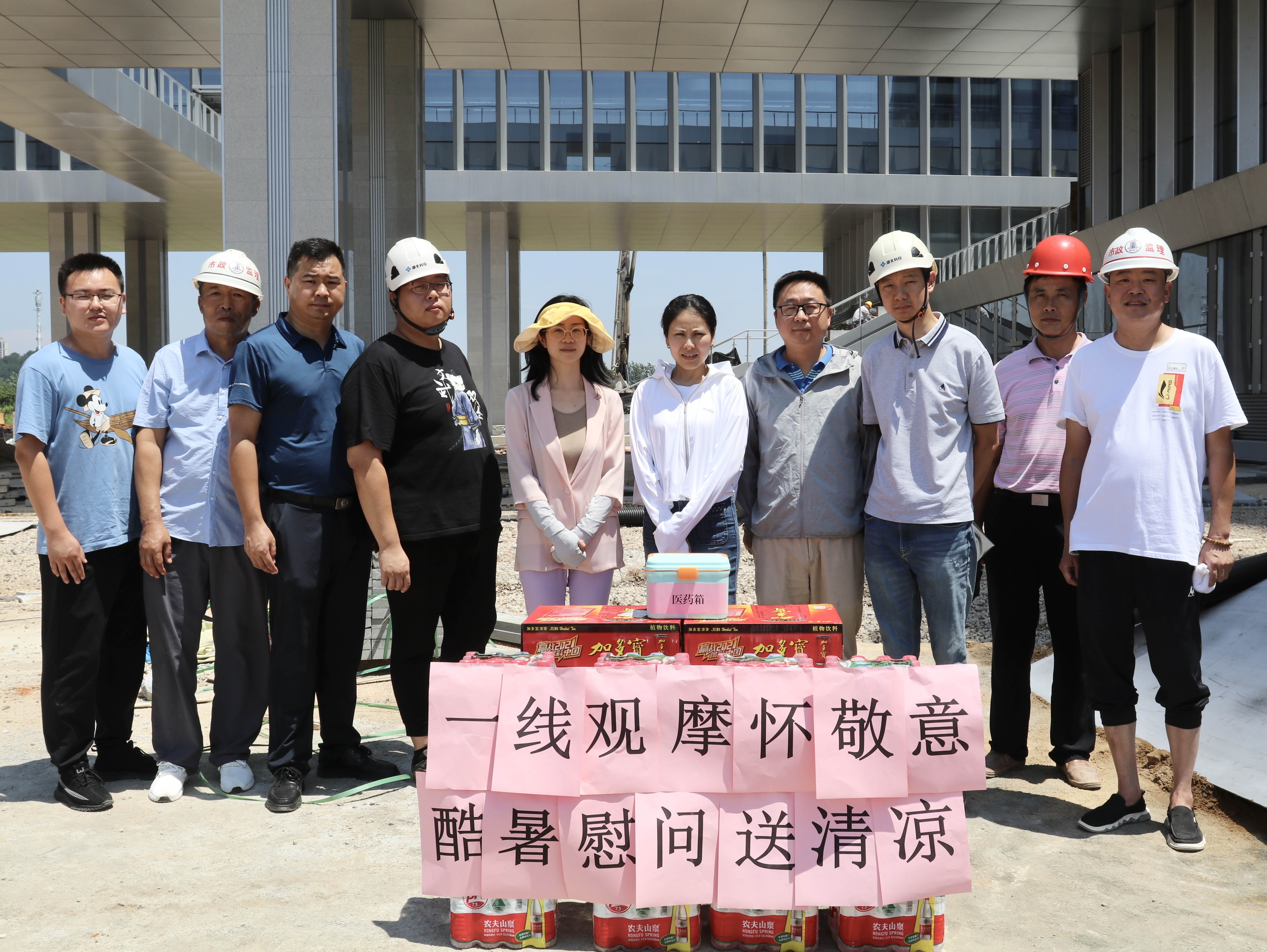 整潔衛(wèi)生的施工場(chǎng)地、醒目的標(biāo)語標(biāo)識(shí)牌、文明安全的施工氛圍,都是每一個(gè)駐扎在項(xiàng)目現(xiàn)場(chǎng)的員工克服重重困難共同努力出來的結(jié)果。一句句關(guān)心的話語,一份份慰問的物品,讓一線駐場(chǎng)人員在酷暑中感受到無比清涼,在場(chǎng)的員工們紛紛表示將繼續(xù)堅(jiān)守崗位,盡職盡責(zé),堅(jiān)持不懈地迎戰(zhàn)高溫、抓進(jìn)度、保質(zhì)量、重安全,確保項(xiàng)目建設(shè)有序推進(jìn)。